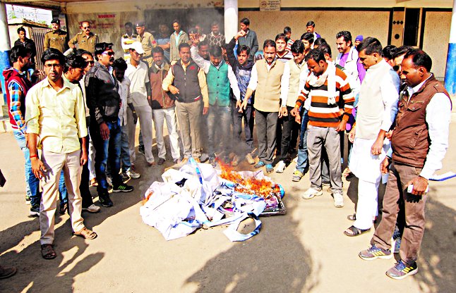 सुबह से ही फिल्म का पोस्टर टाकीज में लग चुका था। फिल्म का विरोध भाजयुमो द्वारा किया जाना है, यह भी पहले से ही ऐलान था, लेकिन पोस्टर जलाने की घटना का टाकीज मैनेजर को भी भान नहीं था। सुबह 10.30 बजे भाजपा नेता मनोज कटारे और भाजयुमो जिलाध्यक्ष दीपक तिवारी के नेतृत्व में युवा टाकीज में घुसे और फिल्म का पोस्टर उतार फेंका। युवाओं ने इस पोस्टर में आग लगा दी। इस दौरान एएसपी संजीव सिन्हा सहित पुलिस बल मौजूद था। टाकीज मैनेजर रमेश शर्मा का कहना है कि विरोध जताने तक तो ठीक था, लेकिन टाकीज पर चढ़कर पोस्टर जलाना उचित नहीं।
