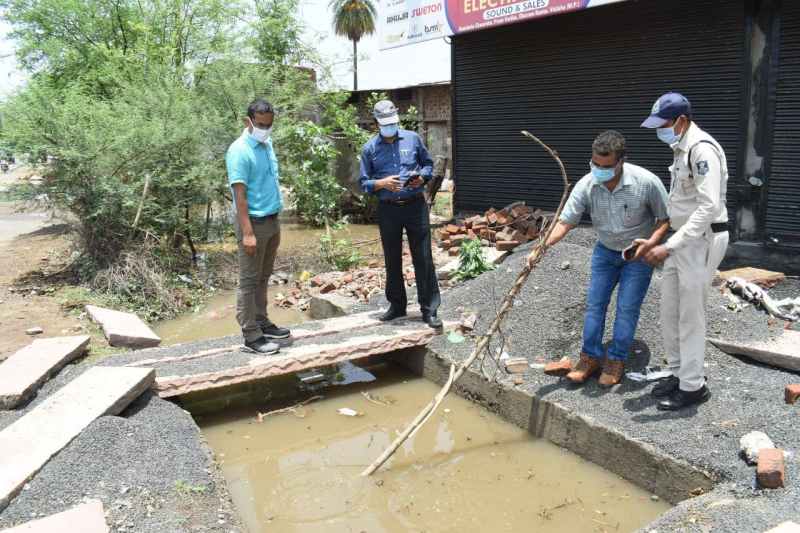 विदिशा. मानसून की आहट के पहले मंगलवार-बुधवार की दरम्यिानी रात विदिशा िजिले में लगभग सभी जगह बारिश हुई। ग्यारसपुर में सर्वाधिक 92, गुलाबगंज में 62, गंजबासौदा में 52.2 और विदिशा में 40 मिमी बारिश सहित पूरे जिले में औसत 33.7 मिमी बारिश रिकार्ड की गई। सुबह कलेक्टर डॉ. पंकज जैन ने एसडीएम और सीएमओ को अपने साथ लिया और चल पड़े नगर भ्रमण पर। उन्हें जानकारी दी गई कि कहीं भी जलभराव की स्थिति नहीं बनी। लेकिन रामलीला चौराहे की ओर जाते समय कलेक्टर की नजर जलभराव पर पड़ी और उतर पड़े अपनी गाड़ी से। उन्होंने काफी समय यहां रुककर मुरम-मिट्टी भराव कर पूर दिए गए नाले को खुदवाकर जल निकासी शुरु कराई। एसडीएम और सीएमओ ने बांस हाथ में लेकर नाले की निकासी तलाशने का भी प्रयास किया।