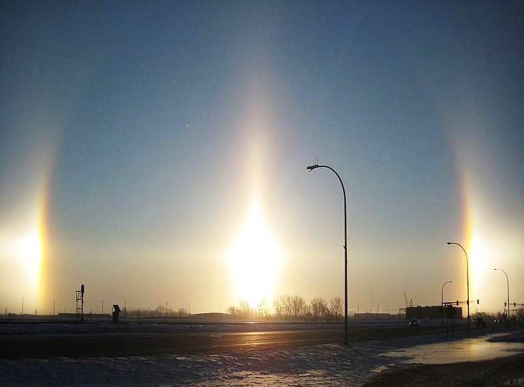 वैज्ञानिकों के मुताबिक ये दुर्लभ (rare incident) घटना सनडॉग के चलते होती है। Sundog सूर्योदय और सूर्यास्त के समय बनता है। जब आसमान में बहुत ज्यादा बादल होते है या बर्फ के कण तैर रहे होते है। तब जब सूरज आसमान में बेहद नीचे की तरफ दिखाई देता है। जब सूरज की किरणें इन कणों से टकराती है तो तीन सूरज दिखाई पड़ते हैं। साथ ही उसके ऊपर उलटा इंद्रधनुष बनता है।