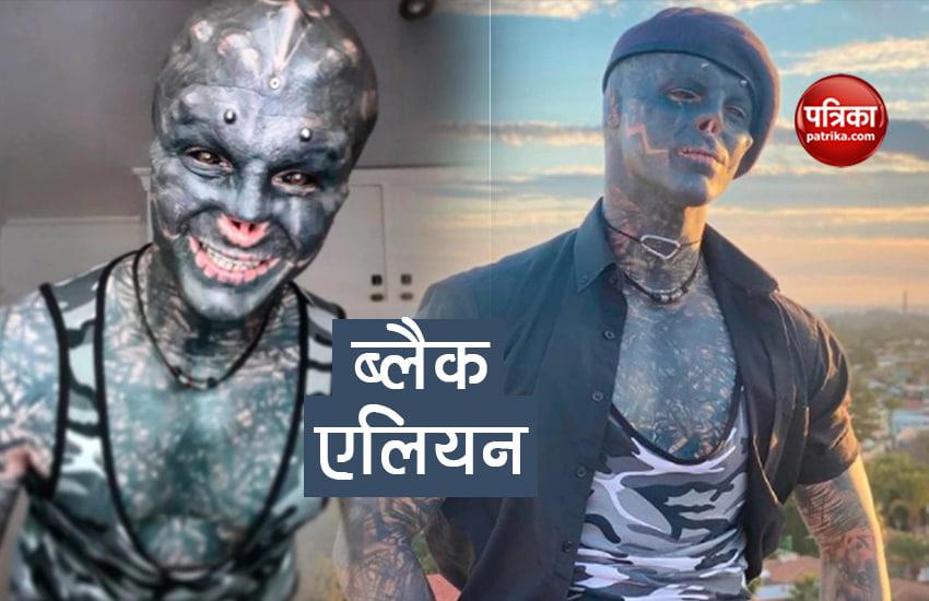 नई दिल्ली। कहते ना शौक बड़ी चीज है। अपने शौक को पूरा करने के लिए ये लोग किसी भी हद तक जा सके है। कई लोगों को टैटू का शौक भी होता है। हट कर करने के चक्कर में ये लोग अपनी जान के साथ भी खिलवाड़ करने से नहीं हिचकिचाते। आज आपको एक ऐसे शख्स के बारे में बताने जा रहे है जिसने अपने पूरे शरीर पर टैटू गुदवा रखे है। इस बंदे ने अपने शरीर के साथ इतनी छोड़छाड़ की कि अब उसको बोलने में परेशानी आ रही है। जी हां, हम बात कर रहे है फ्रांस में रहने वाले एंथली लोफ्रेडो की। 32 साल के एंथली को देखकर कोई भी डर सकता है। यह ब्लैक एलियन के नाम काफी मशहूर है।