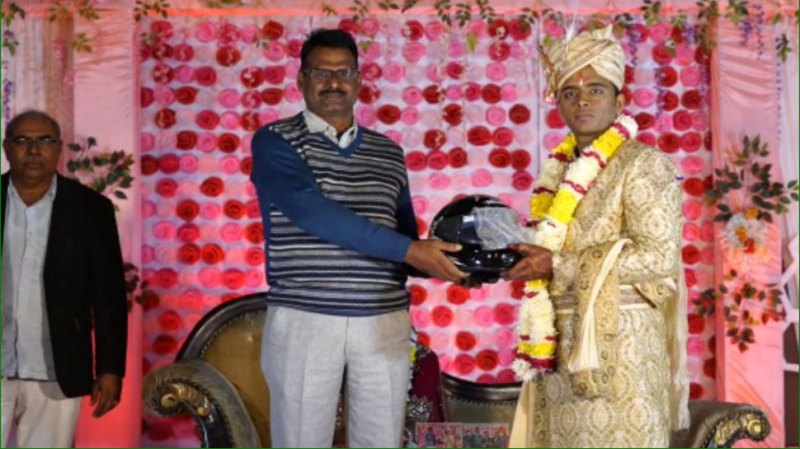 नई दिल्ली। यूं तो शादी (Shadi) में बारातियों की खूब खातिरदारी की जाती है। उन्हें शगुन में रुपए या आभूषण भेंट किए जाते हैं। मगर लक्ष्मणगढ़ में एक ऐसे अनोखे विवाह समारोह का आयोजन किया गया, जहां बारातियों को तोहफे में हेलमेट (Helmet) दिया गया। दुल्हन (Bride Family) के पिता की ये अनूठी पहल सबको खूब पसंद आ रही है।