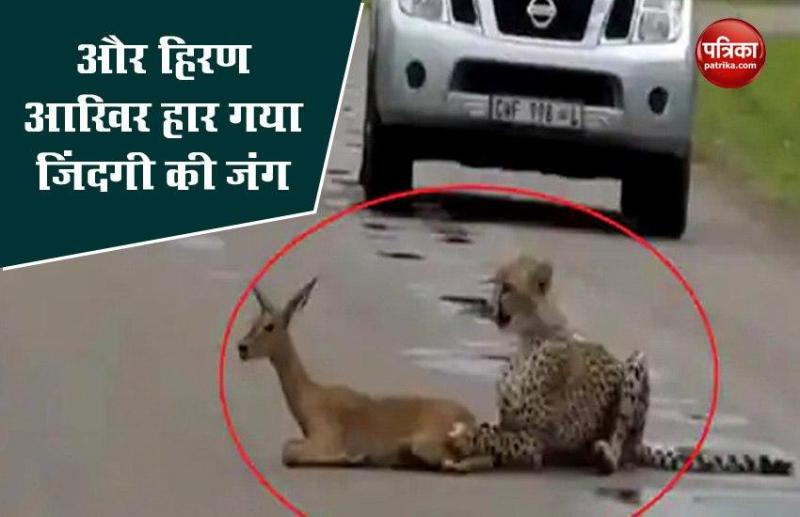 वीडियो में देखा जा सकता है कि एक चीता, हिरण को अपने पंजों में लिए बीच सड़क पर बैठा। हिरण बार—बार चीते के चंगुल से बचने का प्रयास करता है, लेकिन चीता चौंकना रहता है और वह हिरण के हर प्रयास को असफल कर देता हैं। कुछ देर तक दोनों के बीच नोंकझोंक चलती हैं, लेकिन कुछ ही देर बार चीता, हिरण के गर्दन दबोचकर सड़क के दूसरे किनारे पर ले जाता है। जहां उसकी मां भोजन का बेसब्री से इंतजार कर रही होती है। इसके बाद दोनों मिलकर हिरण का काम तमाम कर देते हैं।