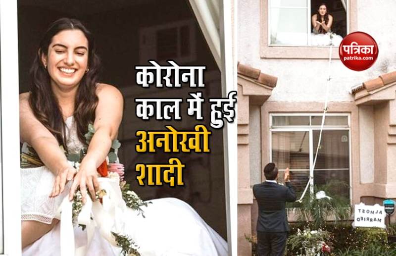 नई दिल्ली। कोरोना का असर न सिर्फ अर्थव्यवस्था पर पड़ा है। बल्कि इसका प्रभाव लोगों के आम जन-जीवन पर भी हुआ है। तभी तो खाने-पीने से लेकर शादी तक के तौर-तरीके काफी बदल गए हैं। ऐसा ही कुछ नजारा अमेरिका के कैलिफोर्निया (California) में भी देखने को मिला। जहां एक दुल्हन ने खिड़की पर बैठकर नीचे खड़े दूल्हे को रिबन के जरिए अंगूठी पहनाई और शादी की बाकी रस्मों को निभाया। इस अनोखी शादी की चर्चा इन दिनों सोशल मीडिया पर खूब हो रही है। लोग कपल के इस अनूठे तरीके की तारीफ कर रहे हैं।