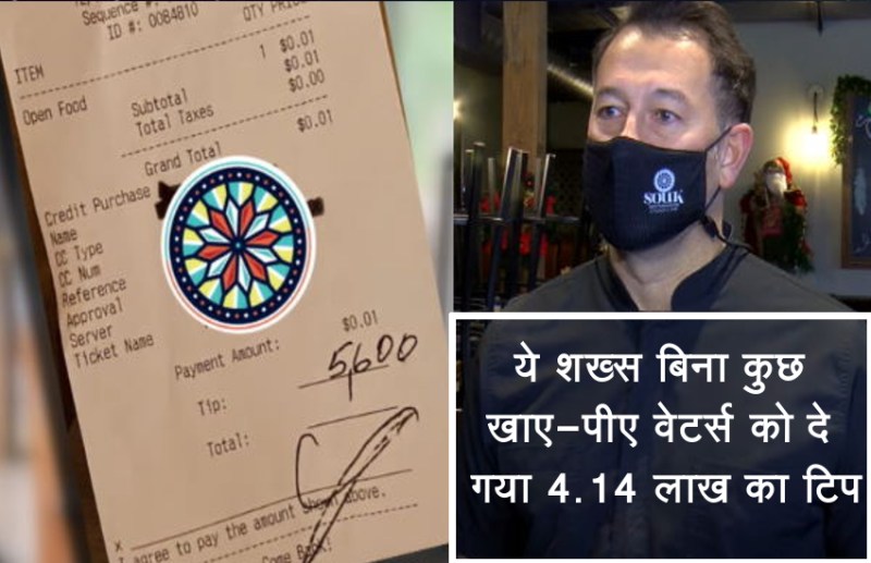 दरअसल, यह शख्स वेटर्स के लिए जो 4.14 लाख रुपए कि टिप छोड़कर गए हैं उसका डिवाइडेशन 28 कर्मचारियों में होगा। रिपोर्ट के मुताबिक, उसने इस राशि को सभी स्टाफ के साथ शेयर करने के लिए कहा, उन्हें भी जो उस दिन छुट्टी पर थे।