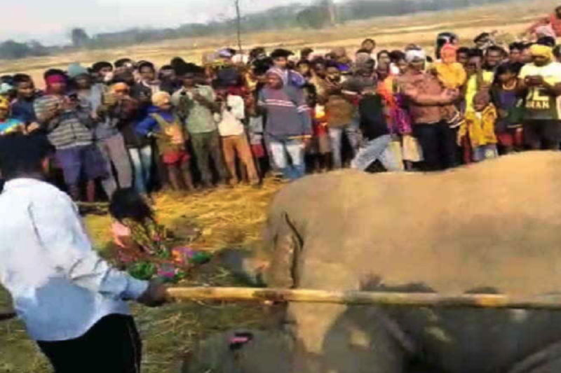 तंत्र मंत्र के जरिए मरे हुए हाथी को जिंदा कर रही थी महिला, तमाशा देखते रहे लोग