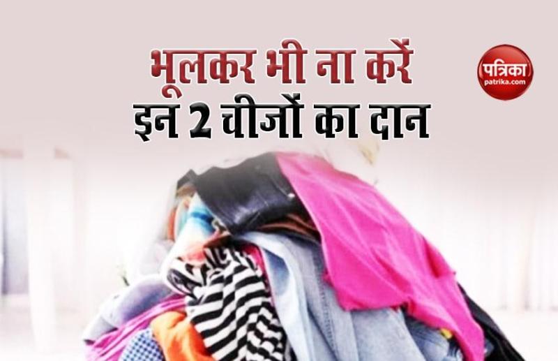 कुछ लोग धर्म और पुण्य समझकर फटे और पुराने कपड़े गरीबों को दान कर देते हैं, लेकिन हमें ऐसा नहीं करना चाहिए। फटे और पुराने कपड़े दान करने से लक्ष्मी जी का प्रकोप खत्म हो जाता है। आप चाहे नए कपड़े दे सकते हैं, लेकिन पुराने और फटे कपड़े कभी ना दे।