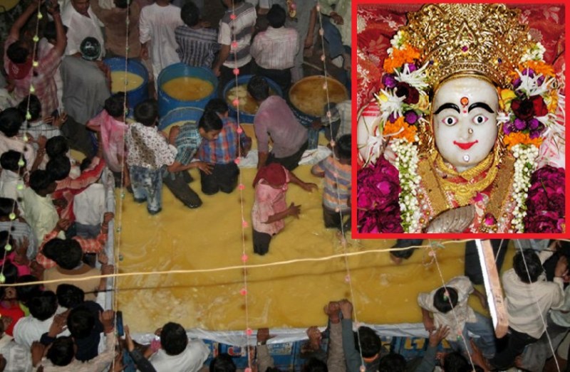 नई दिल्ली। हर मंदिर का अपना रिवाज होता है। ऐसे ही एक गुजरात ( Gujarat ) के मंदिर में देवी माता का घी से अभिषेक करने के रिवाज है। यहां हर साल अक्टूबर महीने में पल्ली महोत्सव मनाया जाता है। वरदायिनी माता के पल्ली स्वरूप के दर्शन के लिए हर साल यहां लाखों श्रद्धालु पहुंचते हैं। मान्यता है कि रूपाल गांव में देवी मां का घी से अभिषेक करने की परंपरा महाभारत काल से चली आ रही है। यहां लोग अपनी मनोकामना पूरी होने की मान्यता मांगने आते हैं। इस परंपरा से महाभारत काल की एक कथा प्रचलित है।