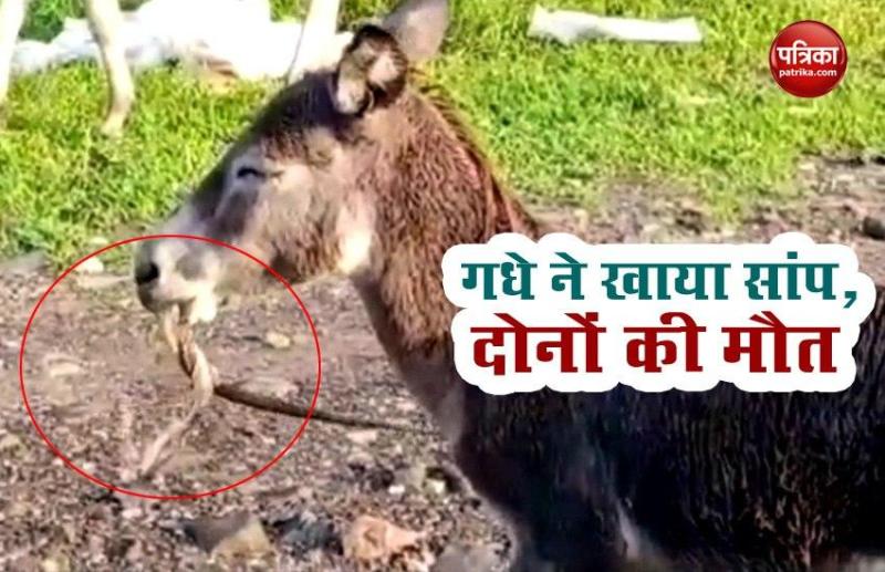 नई दिल्ली। सोशल मीडिया (social media) पर एक तस्वीर तेजी से वायरल गो रही है। इस तस्वीर नें एक गधा, सांप को खाता नजर आ रहा है। इस तस्वीर को देख कर हर कोई हैरान है। दरअसल, Donkey एक शाकाहारी जानवर (Vegetarian animals) है, जो घास फूस खाकर जिंदा रहते हैं। लेकिन ये Donkey गलती से सांप को घास समझ कर खा लिया। इससे दोनों की मौत हो गई।