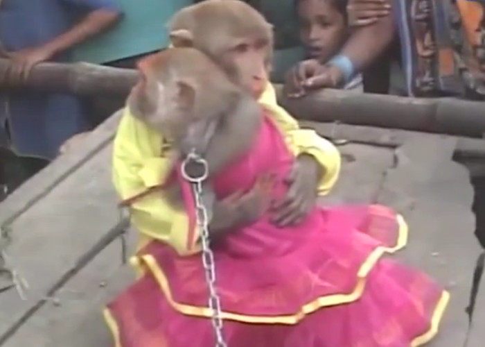 वीडियो में देखिए कि कैसे एक बंदर और बंदरिया को बाकायदा कपड़े पहनाकर पूरे विधिविधान और धूमधाम से शादी की जा रही है।