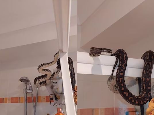 सोशल मीडिया (Social Media) के प्लेटफॉर्म फेसबुक पर इस संस्था ने दो फोटोज शेयर करते हुए, लिखा कि कार्पेट पायथन ने उनके क्लाइंट को बुरी तरह से डरा दिया। जैसे ही वह बाथरूम में गए। वहां उनको एक लंबा अजगर दिखाई दिया। जिसकी लम्बाई लगभग 6 फुट थीं। इस संस्था के संस्थापक जैकसन स्नेक कैचर (Jackson Snake Catcher) फटाफट उनके घर पहुंच गया। और जैसे ही वो वह पहुंचे उस सांप को देख एक बार की तो उनके भी होश उड गए। उसका वजन लगभग 10 किलो था। वह बाथरूम में शावर के ऊपर फाइबर (Fiber) की दीवार पर लटका हुआ था।