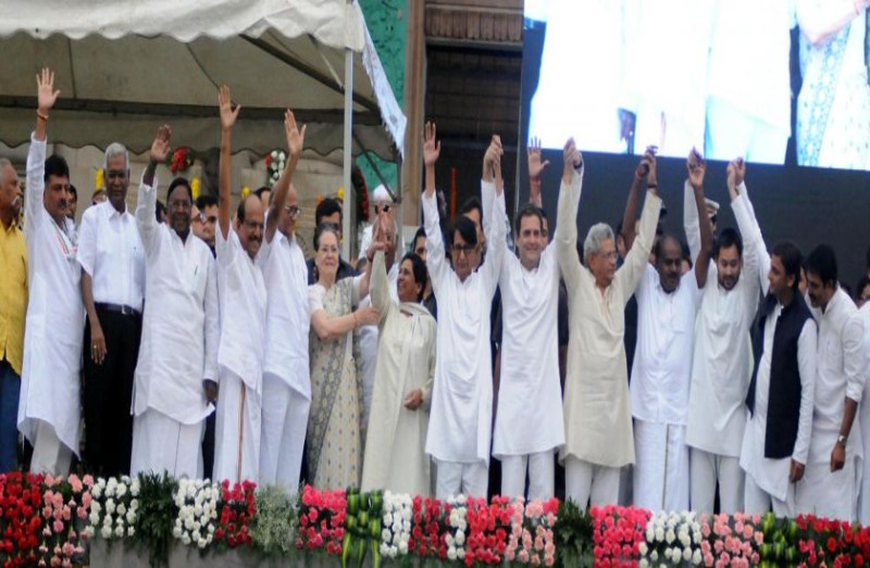 भारतीय जनता पार्टी के अध्यक्ष अमित शाह ने 2019 के अखाड़े में यह पूछकर सीधी चुनौती दे डाली है कि कहां है महागठबंधन? इसके विपरीत कांग्रेस, सपा, बसपा, तृणमूल कांग्रेस, झारखंड मुक्ति मोर्चा, द्रमुक, तेलुगू देशम, टीआरएस, राजद, राष्ट्रीय लोकदल, शिवसेना और अन्य क्षेत्रीय दलों में एक-एक सीट पर खींचतान है, वे कांग्रेस के मुकाबले अपनी ताकत को ज्यादा साबित करने में लगे हैं। इसी वजह से अविश्वास प्रस्ताव के दौरान गृहमंत्री राजनाथ सिंह ने तंज करते हुए कहा कि विपक्ष के तथाकथित गठबंधन में नेता के सवाल पर गहरा अविश्वास है। अगर नेता का सवाल उठेगा तो वह तत्काल बिखर जाएगा।
