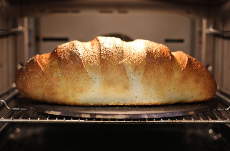 एक घंटे बाद, ओवन को २०० डि. से. पर गरम कीजिए, ब्रेड की ट्रे ओवन में रखिए और ओवन को डि. २०० से. तापमान पर सैट करके, १० मिनिट के लिये बेक कीजिए। समय समाप्त होने पर ब्रेड को चैक कीजिए, ब्रेड ऊपर से अच्छी ब्राउन हो गई तब ब्रेड बेक हो चुकी है, यदि नहीं तो आप फिर से २-४ मिनिट के लिए इतने ही तापमान पर ओवन को सैट करके ब्रेड को बेक करने लगा दीजिए।