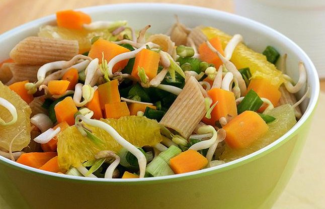 Penne and fruit salad