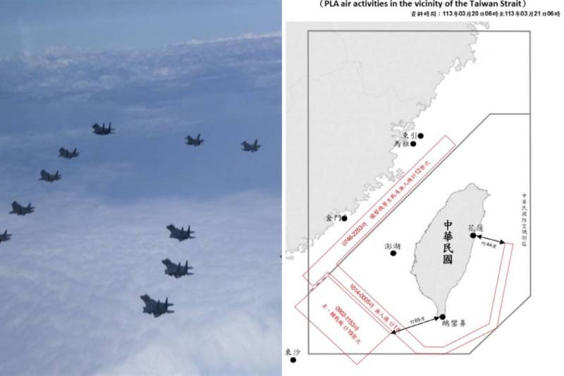 ताइवान न्यूज़ की रिपोर्ट के मुताबिक ताइवान के राष्ट्रीय रक्षा मंत्रालय (MND) ने बताया है कि उसने बीते 20 मार्च को सुबह 6 बजे से आज सुबह 6 बजे तक 32 चीनी सैन्य विमानों और पांच पीपुल्स लिबरेशन आर्मी नेवी (PLAN) जहाजों की निगरानी की है। इन 32 फाइटर विमानों में से 20 ने ताइवान जलडमरूमध्य (Strait) की मध्य रेखा को पार किया और ताइवान के दक्षिण-पश्चिमी, दक्षिणपूर्वी और पूर्वी वायु रक्षा क्षेत्र में घुस गए। मंत्रालय ने कहा है कि वो लगातार इन चीनी विमानों और जहाजों की निगरानी कर रहे हैं और उनकी एक-एक गतिविधि को मॉनिटर कर रहे हैं।