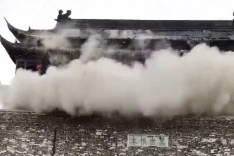 चीन में फेंगयांग ड्रम टॉवर ढह गया। (फोटो:स्क्रीन शॉट)