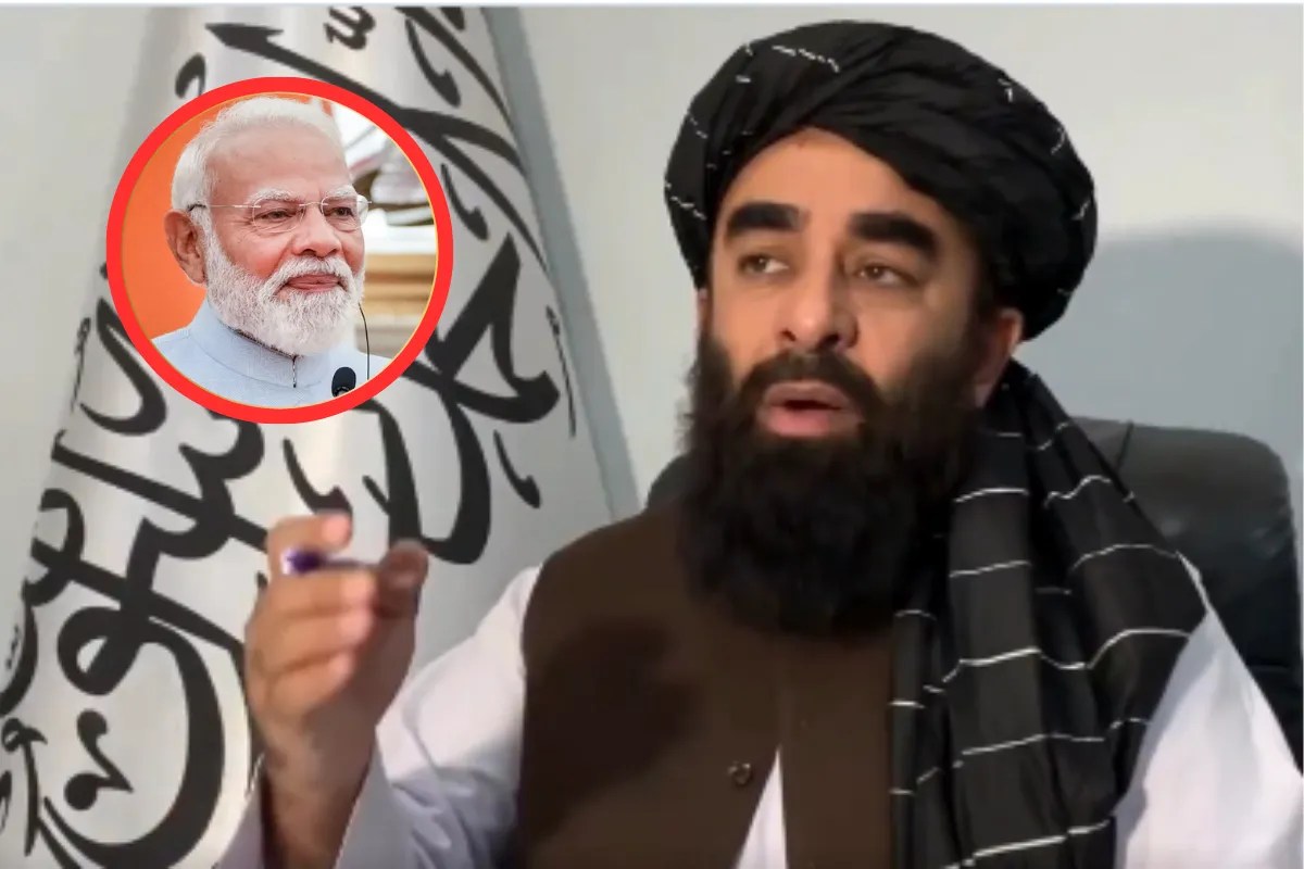 फोटो सर्कल में पीएम मोदी और अफगान सरकार के प्रवक्ता जबीउल्लाह मुजाहिद (सोर्स: PTI)