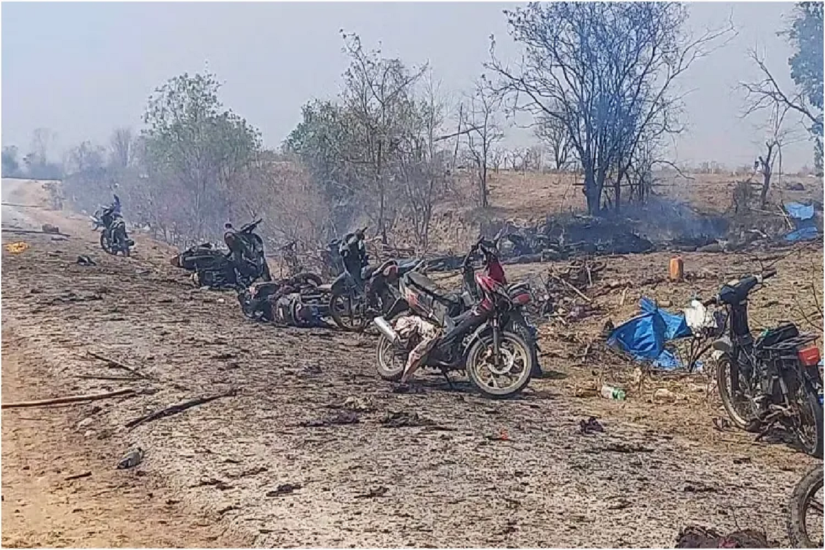 म्यांमार के चाउंग यू टाउनशिप से एक दिल देहला देने वाली घटना सामने आई है, यहां बौद्ध फेस्टिवल के दौरान एक मोटर-पावर्ड पैराग्लाइडर ने भीड़ पर दो बम गिराए हैं। जिसके चलते कम से कम 24 लोग मारे गए और 47 घायल हुए हैं। बीबीसी के निर्वासित नेशनल यूनिटी गवर्नमेंट (NUG) के एक प्रवक्ता ने इस घटना की जानकारी दी है।