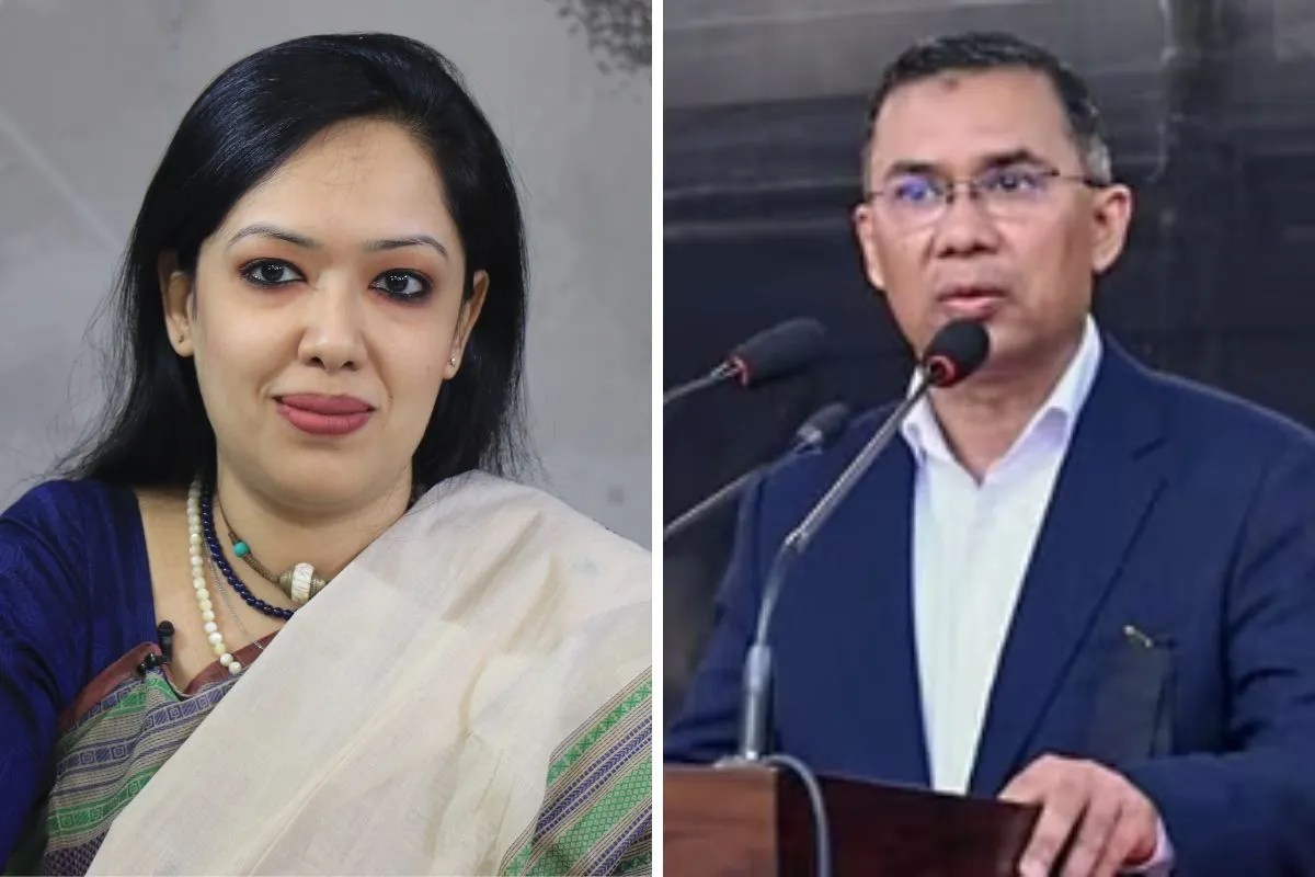 महिला निर्दलीय सांसद रूमीन फरहाना और पीएम तारिक रहमान। (फोटो- ANI)