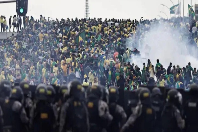 ब्राजील की मीडिया के मुताबिक, ब्राजील के पूर्व राष्ट्रपति जायर बोल्सोनारो के समर्थकों ने रविवार को ब्राजीलियन सेना के बनाए गए सुरक्षा घेरों को तोड़ते हुए संसद भवन, सुप्रीम कोर्ट और प्रेसिडेंट हाउस में जमकर तोड़फोड़ की गई। सोशल मीडिया कई वीडियो वायरल हो रहे है। इन वीवीडियो में बोल्सोनारो के समर्थकों की भारी भीड़ नजर आ ही है। ब्राजील के राष्ट्रीय झंडे में लिपटे प्रदर्शनकारियों ने राष्ट्रपति भवन को घेर लिया। इनको काबू करने के लिए पुलिस ने आंसू गैस के गोले छोड़ने पड़े।