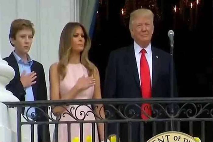 ये पूरी घटना कैमरे में कैद हो गई तथा अब वह सोशल मीडिया पर वायरल हो रहा है। दरअसल, एक कार्यक्रम के दौरान राष्ट्रपति डोनाल्ड ट्रंप, उनकी पत्नी मेलानिया ट्रंप और उनका बेटा राष्ट्रगान के लिये खड़े थे।