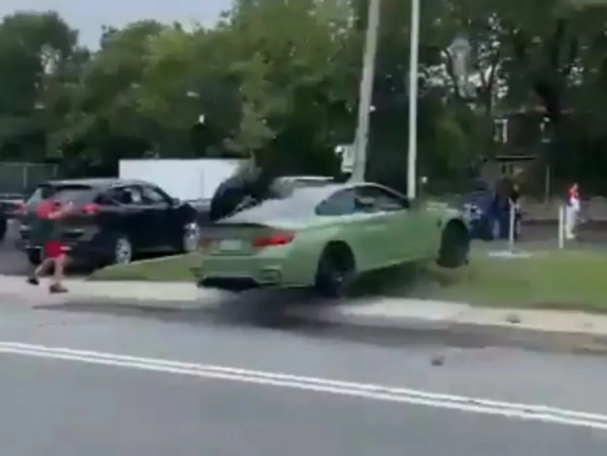 कुछ ही पलों में ड्राइवर का कंट्रोल छूट जाता है और BMW लहराती हुई आगे बढ़ती है। इसी दौरान कार एक व्यक्ति को टक्कर मार देती है, जो उछलकर पास खड़ी एक महिला से जा टकराता है और जमीन पर गिर पड़ता है। इसके बाद BMW तेज रफ्तार में एक खंभे से जा भिड़ती है। टक्कर इतनी जोरदार होती है कि खंभा भी कार के ऊपर गिर जाता है।
