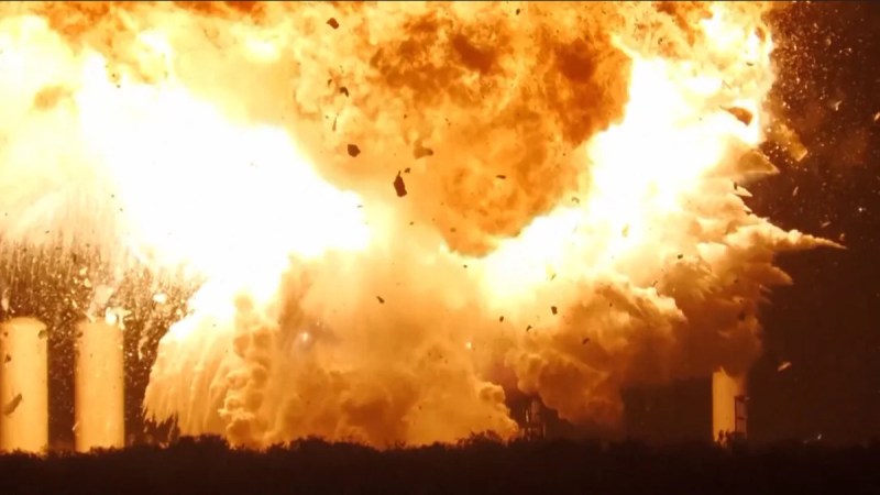 धमाके के वीडियो में स्पेसएक्स के बेस में ज्वालामुखी की तरह आग की ऊंची लपटें आसमान में दिखाई दीं और राख का गुबार हज़ारों फीट इलाके में फैल गया। फायर टेस्ट के जटिल परीक्षण के ठीक पहले रॉकेट में बम जैसा धमाका हुआ और यह टुकड़े-टुकड़े हो गया।