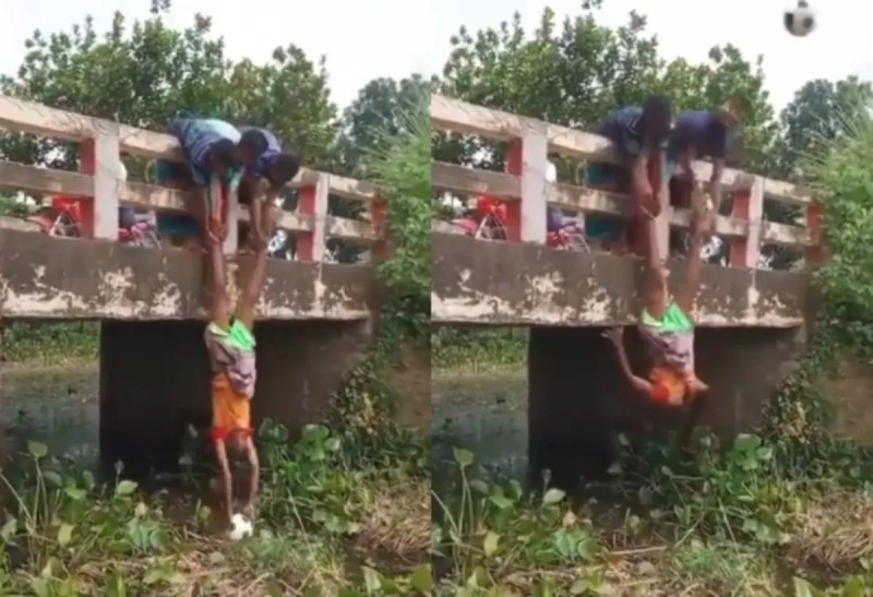 दुनियाभर में बच्चे और युवा मनोरंजन के लिए तरह-तरह के खेल खेलते हैं। खेल के दौरान कई बार गेंद या अन्य खेल सामग्री खो जाती है या ऐसी जगह चली जाती है, जहाँ से उसे लाना मुश्किल हो जाता है। सोशल मीडिया पर ऐसे ही कई मजेदार और हैरान करने वाले वीडियो वायरल होते रहते हैं। इसी तरह का एक पुराना वीडियो सोशल मीडिया पर शेयर किया गया है, जिसमें कुछ लड़के फुटबॉल वापस लाने के लिए अपने दोस्त को पुल से लटका देते हैं।