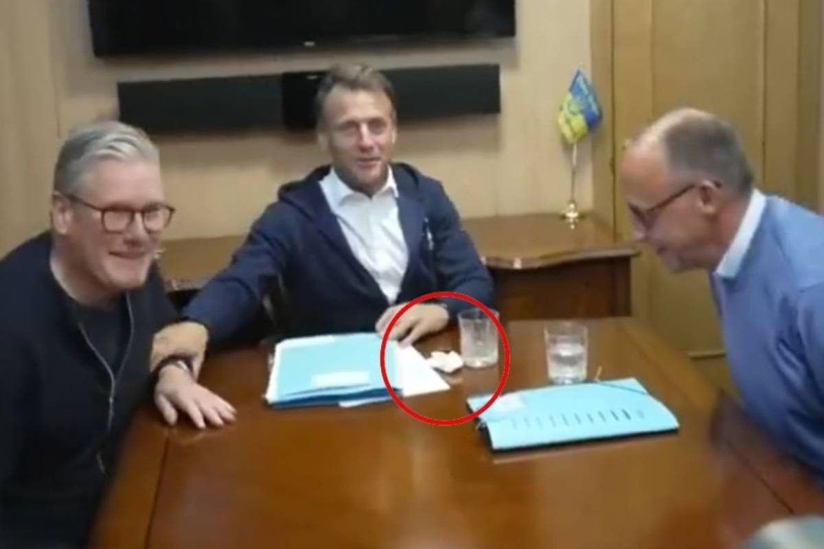 ट्रेन से यात्रा करते समय मीडिया की ओर से शूट किए गए एक वीडियो में मैक्रों और मर्ज़ को स्टारमर का स्वागत करते हुए दिखाया गया। जब वे एक मेज के चारों ओर कुर्सियों पर बैठे, तो मैक्रों मेज पर रखी कोई सफ़ेद चीज़ उठाते हुए दिखाई दिए और मर्ज़ भी मेज पर रखी किसी चीज़ को हाथ से घुमाते हुए नजर आए।