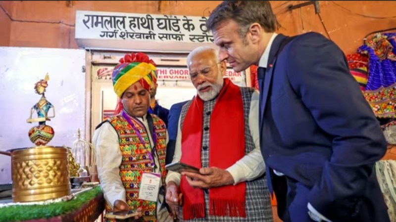 PM Narendra Modi and French President Emmanuel Macron in Jaipur