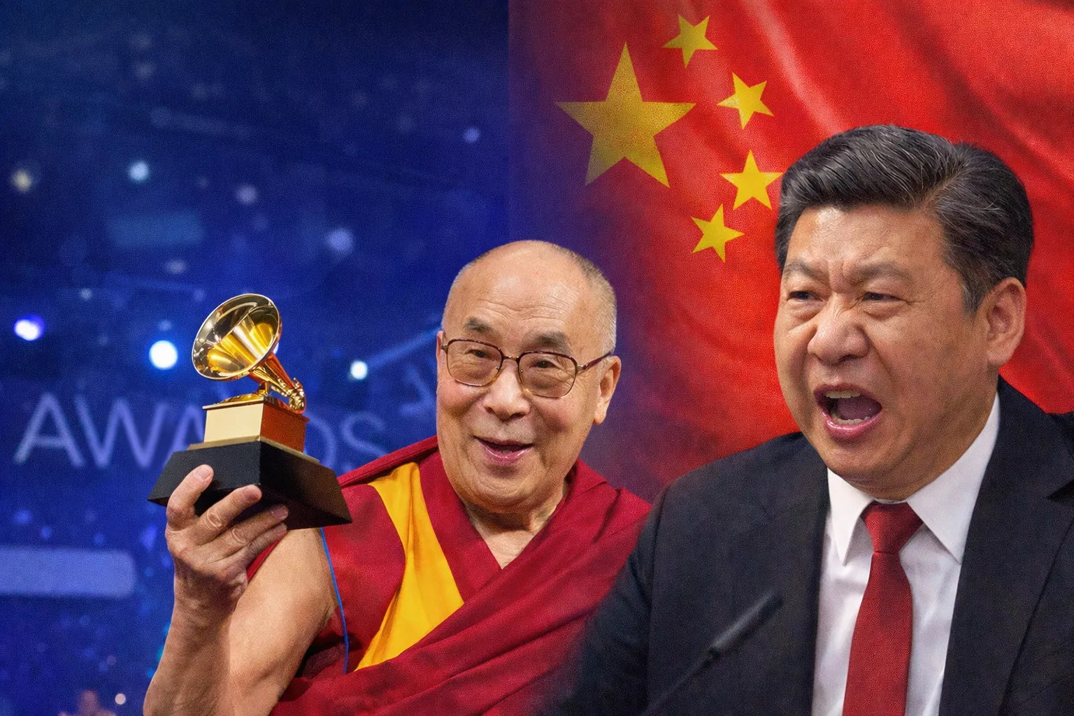 दलाई लामा ने 90 की उम्र में जीता पहला ग्रैमी अवॉर्ड। चीन हुआ आगबबूला। (इमेज सोर्स: AI जनरेटेड)