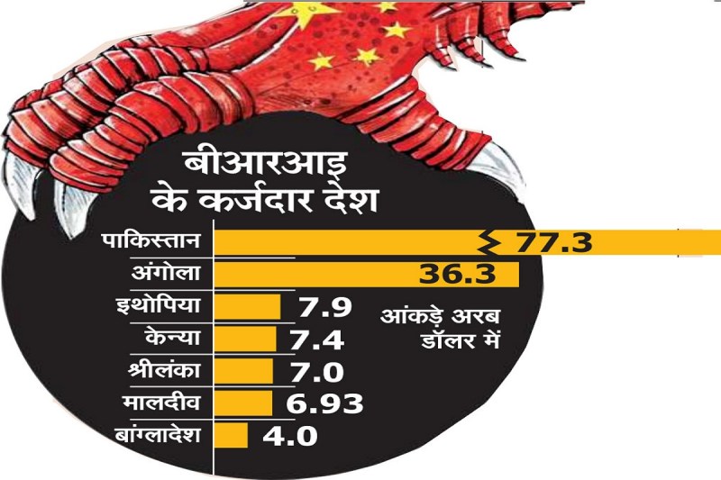राष्ट्रीय आय के 9 प्रतिशत चीनी कर्ज वाला श्रीलंका पहले ही दिवालिया घोषित हो चुका है और 6 अरब डॉलर चीनी कर्ज वाला जांबिया भी कर्ज का भुगतान नहीं कर पा रहा है। चीनी कर्ज वाले पाकिस्तान और श्रीलंका पहले ही दिवालिया होने से बचने के लिए आइएमएफ से कर्ज ले रहे हैं। रिपोर्ट में कहा गया है कि डिफॉल्ट होने वाले देश से चीन बंदरगाह या खनन या रेलवे लाइन के अधिकार हासिल कर लेता है।