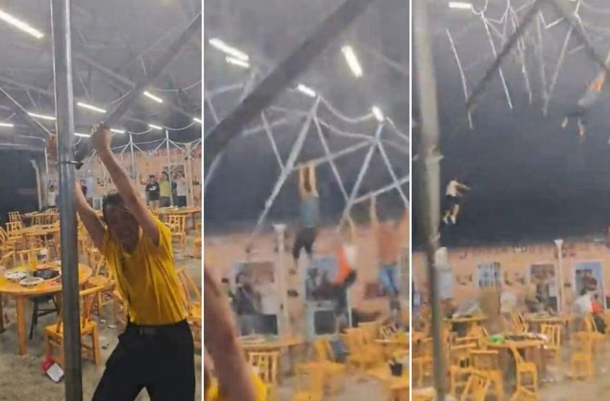 हुबेई राज्य के यिचांग शहर में आए तूफान का एक वीडियो सोशल मीडिया पर चर्चा का विषय बना हुआ है। हाल ही में यिचांग के एक रेस्टोरेंट का वीडियो सामने आया है। इस वीडियो में तूफान का ऐसा कहर दिखाई दिया जिससे वहाँ मौजूद लोगों के होश उड़ गए। तूफान इतना तेज़ था कि वहाँ मौजूद लोगों ने खुद को बचाने के लिए रेस्टोरेंट में लगे पोल्स को पकड़ लिया। पर तूफान के असर की वजह से रेस्टोरेंट के बाहर की तरफ लगी छत ही टूट कर उड़ गई। इससे वो लोग जिन्होंने पोल्स को पकड़ रखा था, वो हवा में उड़ गए और जोर से ज़मीन पर गिर गए।