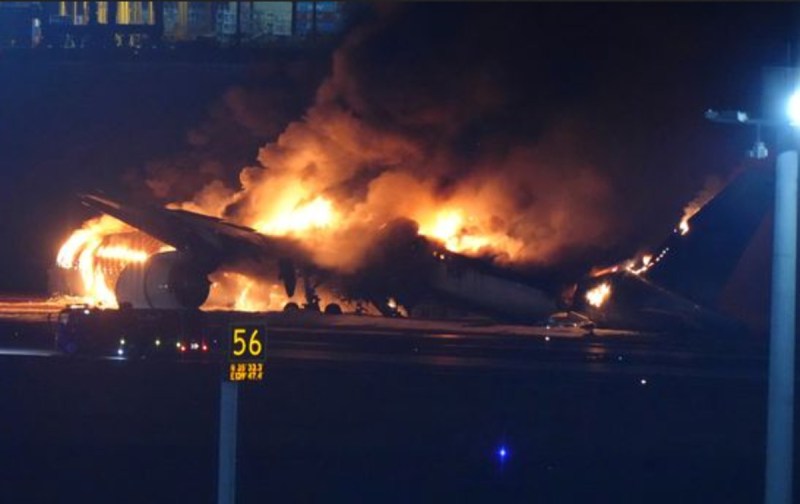जापान एयरलाइन्स का विमान आग लगने के बाद धू-धू होकर जल गया। मौके पर दमकल की गाड़ियाँ विमान में लगी आग को बुझाने की कोशिशों में लगी हुई हैं। विमान के जलने के वीडियो को नीचे देखा जा सकता है।