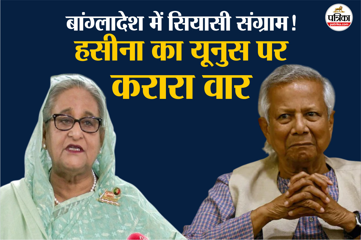 बांग्लादेश की अपदस्थ प्रधानमंत्री शेख हसीना ने अंतरिम सरकार के प्रमुख सलाहकार मुहम्मद यूनुस पर गंभीर आरोप लगाया है।(फोटो: पत्रिका।)