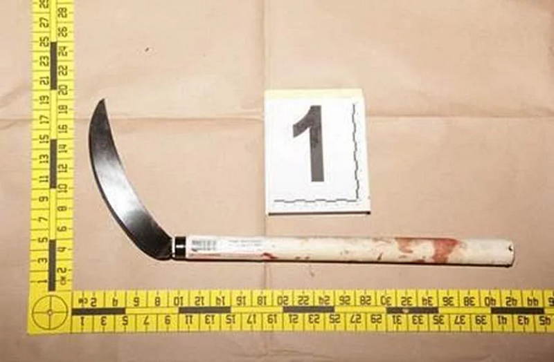 Vickneswaran Sivan slashed the Certis enforcement officer's hands and legs at least four times with the sickle. PHOTO: SINGAPORE POLICE FORCE