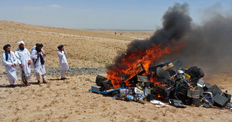 हाल ही में अफगानिस्तान के हेरात प्रांत में तालिबान की वाइस मिनिस्ट्री कुछ अधिकारियों ने एक रेगिस्तान में म्यूज़िकल इंस्ट्रूमेंट्स के ढेर को आग के हवाले कर दिया। यह म्यूज़िकल इंस्ट्रूमेंट्स के बॉनफायर जैसा लगा। इनमें से ज़्यादातर म्यूज़िकल इंस्ट्रूमेंट्स शहर में होने वाली शादियों के हॉल से लिए गए थे और इनमें कई तरह के म्यूज़िकल इंस्ट्रूमेंट्स थे।