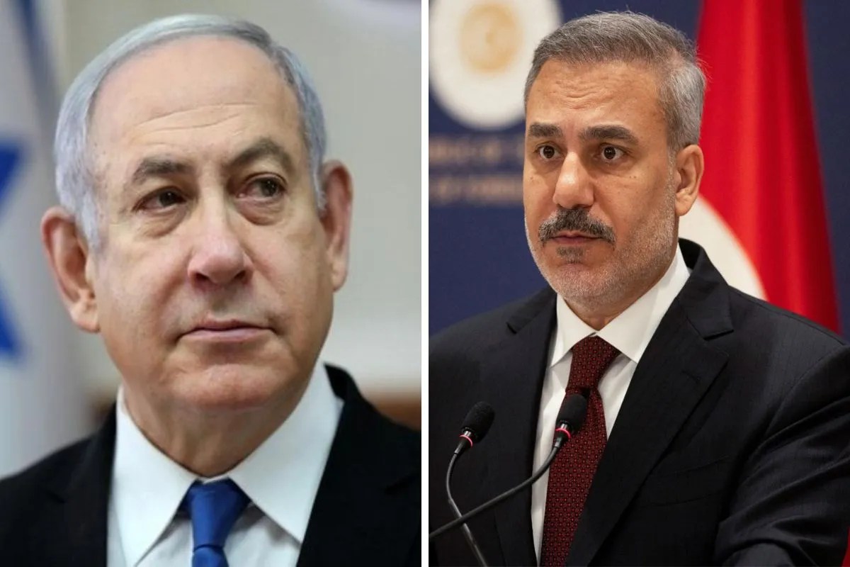 इजराइल के पीएम बेंजामिन नेतन्याहू और तुर्की के विदेश मंत्री हाकान फिदान। (फोटो- ANI)