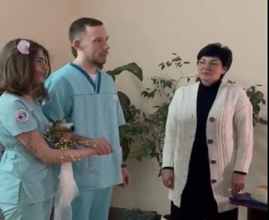 कपल की शादी का ये वीडियो मीडिया आउटलेट Nexta (Belarusian Media Outlet) ने शेयर किया है। वीडियो में डॉक्टर कपल की शादी का वीडियो शेयर कर लिखा है - 'कीव में डॉक्टरों ने अस्पताल में ही शादी करने का फैसला किया।' इस वीडियो को दो लाख से ज्यादा व्यूज भी मिल चुके हैं।
