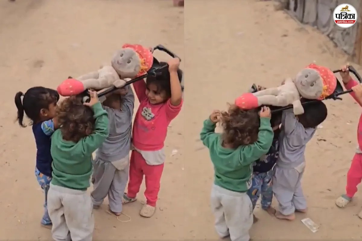 गाजा (Gaza) पट्टी में जारी संघर्ष ने आम जीवन को पूरी तरह बदल दिया है। यहां के लोग लंबे समय से हिंसा, विस्थापन और असुरक्षा के बीच जी रहे हैं। इसी सच्चाई को दर्शाने वाला एक वीडियो इन दिनों तेजी से सोशल मीडिया पर वायरल हो रहा है। इस वीडियो में गाजा में फैली त्रासदी को एक और भावनात्मक रूप में पेश किया गया है। वीडियो में छोटे बच्चे एक गुड़िया का अंतिम संस्कार करते नजर आ रहे है। यह दृश्य केवल एक खेल नहीं बल्कि उस गहरे मानसिक आघात का प्रतीक है, जिसे वहां के बच्चे हर दिन झेल रहे हैं।