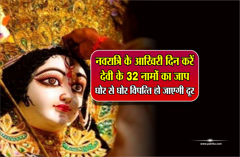 नवदुर्गा में पूरे नौं दिनों देवी की आराधना की जाती है लेकिन यदि किसी कारण वश आप इन नौं दिनों देवी की पूजा करने से वंशित हो गए हैं तो निराश ना हों क्योंकि शास्त्रों के अनुसार देवी का श्रृद्धा पूर्वक व सच्चे मन से समरण करने से वे प्रसन्न हो जाती है वहीं आज नवरात्रि के आखिरी दिन आप मां दुर्गा के नामों का जाप करके अपनी पूजा को पूरा कर उन्हें प्रसन्न कर सकते हैं। माता के इन 32 नामों के जाप से मां आपको प्रसन्न होकर आशीर्वाद प्रदान करेंगी।